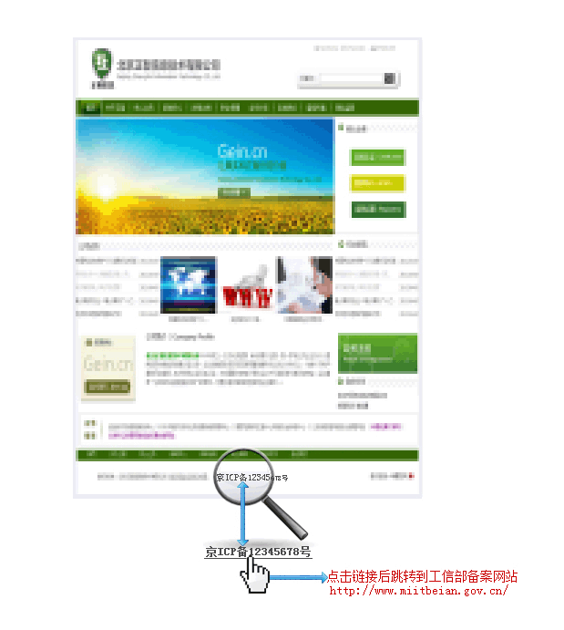 網(wǎng)站主頁(yè)下方需注明已獲得的備案編號(hào)通知:根據(jù)《互聯(lián)網(wǎng)信息服務(wù)管理辦法》第十三條:非經(jīng)營(yíng)性互聯(lián)網(wǎng)信息服務(wù)提供者應(yīng)當(dāng)在其網(wǎng)站開(kāi)通時(shí)在主頁(yè)底部的中央位置標(biāo)明其備案編號(hào),并在備案編號(hào)下方按要求鏈接信息產(chǎn)業(yè)部備案管理系統(tǒng)網(wǎng)址,供公眾查詢核對(duì)。非經(jīng)營(yíng)性互聯(lián)網(wǎng)信息服務(wù)提供者應(yīng)當(dāng)在其網(wǎng)站開(kāi)通時(shí),按照信息產(chǎn)業(yè)部備案管理系統(tǒng)的要求,將備案電子驗(yàn)證標(biāo)識(shí)放置在其網(wǎng)站的指定目錄下。